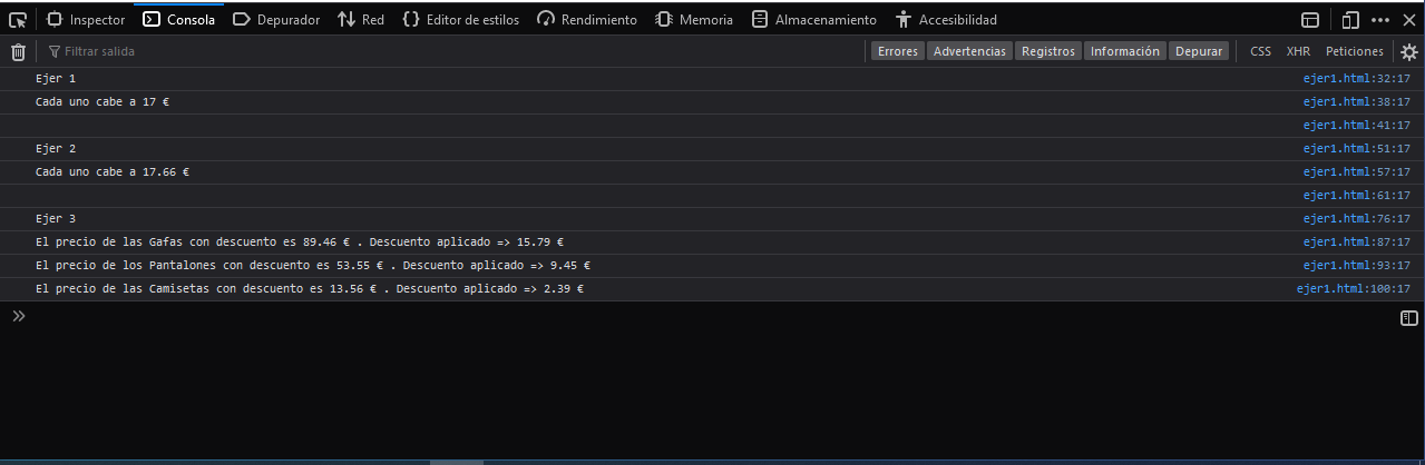Esta captura es de la actividad anterior en la cual se hace lo mismo que en esta pero mostrando todos los resltados desde la consola , aquí tenemos la captura para comprobar que los resultados coinciden :